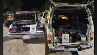 Ao realizada a abordagem, foi constatado que o veículo estava transportando várias baterias usadas, do Paraguai. Ainda no barracão, foi localizado outro veículo paraguaio também carregado com o mesmo material.